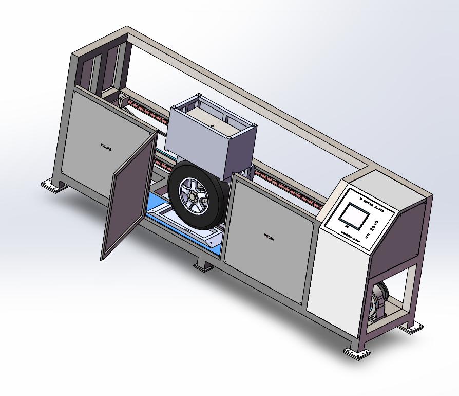 用表面靜電噴涂的鋼架構(gòu)成框架,底板模擬水泥地板,碾壓機(jī)構(gòu)可模擬汽車對物體碾壓后以自由上下滑動(dòng),插頭承受壓力相同,