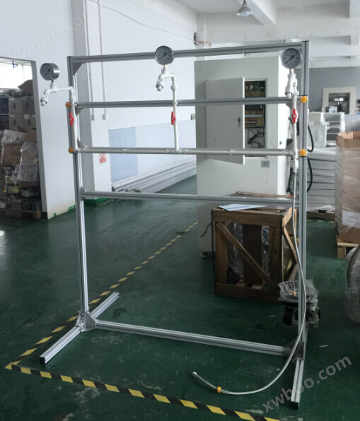 ??符合UL484(ROOM?AIR?CONDITIONERS)和其他UL標(biāo)準(zhǔn)、GB5956中、之規(guī)定防水試驗(yàn)方法以及JIS、MIL等標(biāo)準(zhǔn)。試驗(yàn)裝置適用于外殼防護(hù)等級(jí)(IP標(biāo)志)試驗(yàn),試驗(yàn)期間的水源應(yīng)采用保持流速不變的清水進(jìn)行,水流速度為10L/min±5%,保證水流速度壓力為50~150kpa。