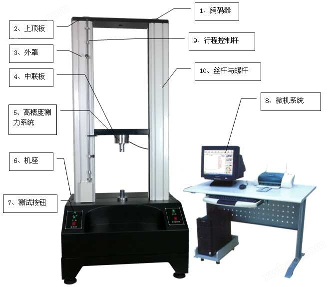 功能用途:用于金屬、非金屬、纖維、無紡布、塑料、木材、紙張、橡膠及新型復(fù)合材料的拉伸、壓縮、彎曲力學(xué)性能測試。可根據(jù)GB、JIS、ASTM、DIN、ISO等標準自動求?。捍笤囼灹Α嗔蚜?、上(下)屈服點、斷裂強度、屈服強度、彎曲強度、伸長率、定伸長應(yīng)力、定應(yīng)力伸長、彈性模量等參數(shù),并打印出試驗報告和曲線。