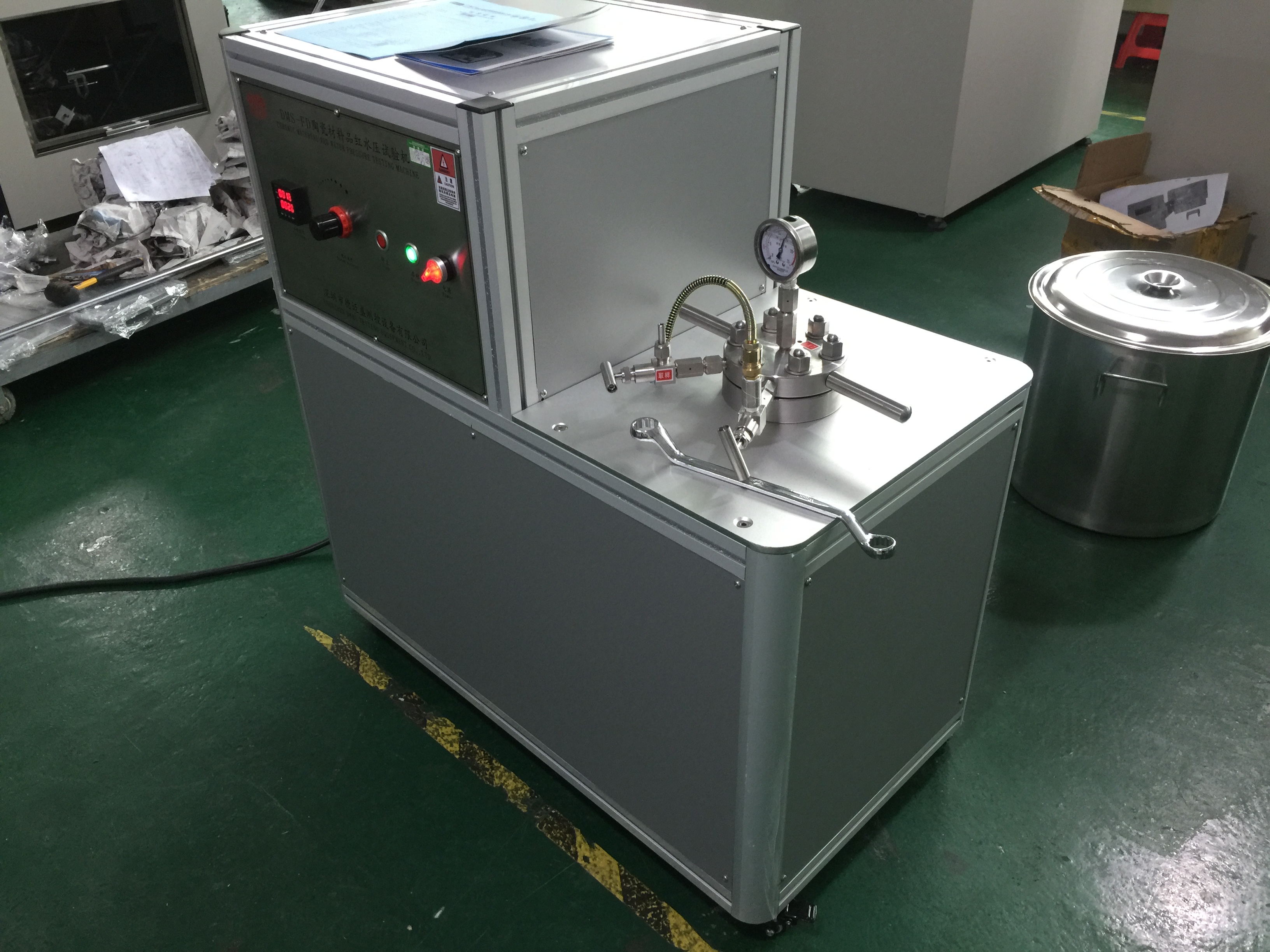 陶瓷品紅試驗(yàn)機(jī)依據(jù)IEC60335-1通用要求,22.32陶瓷緊密性試驗(yàn)裝置,GB4706.1-2005的22.32要求設(shè)計(jì)。由兩部分構(gòu)成:品紅試驗(yàn)容器和水壓增壓裝置。