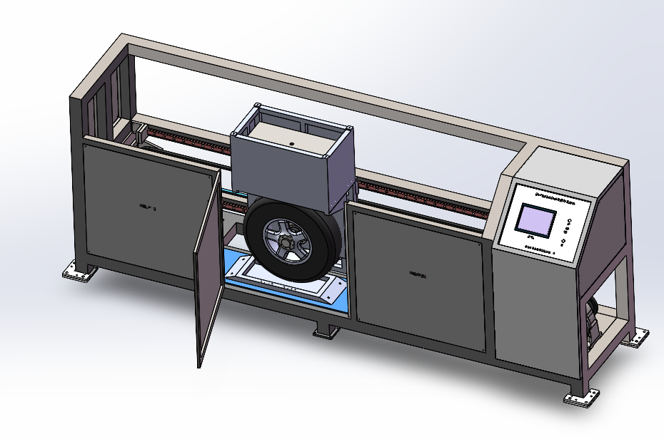 并裝有限位保護(hù),另一組驅(qū)動(dòng)裝置帶動(dòng)碾壓機(jī)構(gòu)實(shí)現(xiàn)前后碾壓動(dòng)作,主要部件以不銹鋼和鋁件制成。(保證輪胎是在正常滾動(dòng)的情況下碾壓樣品)