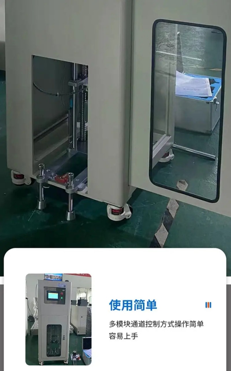 25、整機架構(gòu):測試箱體與控制臺分開,測試箱體鋼制架構(gòu),外表烤漆,零件電鍍處理,配置重載腳輪,方便移動,操作時可固定調(diào)平;