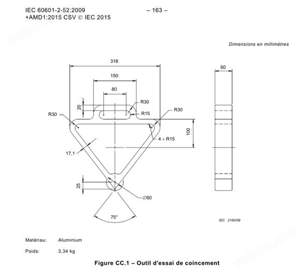 主要參數(shù)規(guī)格:楔形工具是根據(jù)IEC60601-2-52圖CC.1要求設(shè)計制作而成,用于評估醫(yī)療器械的V型開口風(fēng)險程度,被測區(qū)域是B和C的V形開口,本三角形測試工具材質(zhì)為鋁,重量3.34kg.