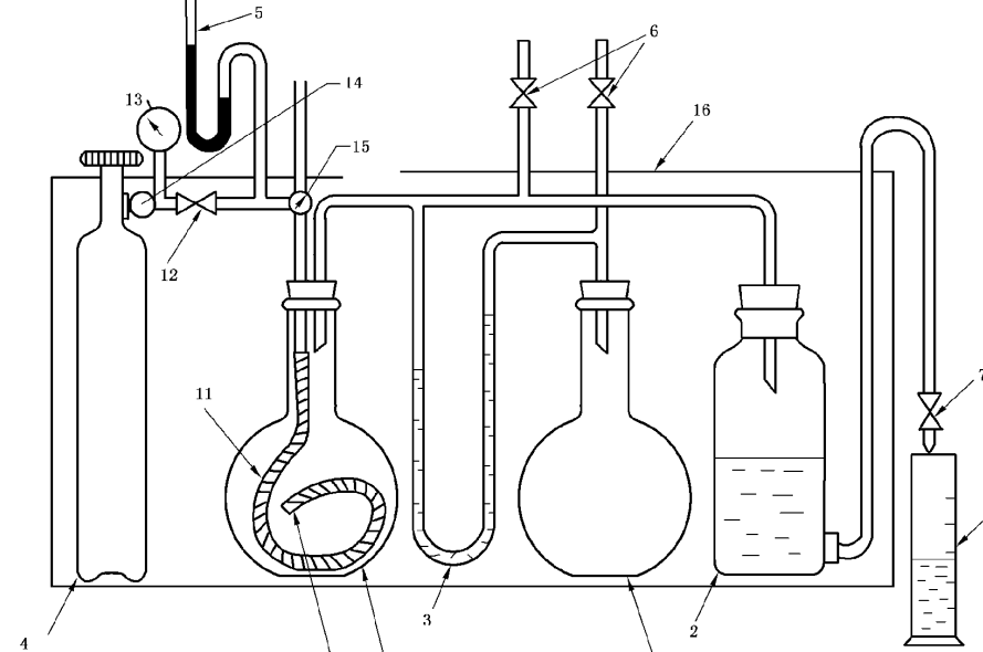 瓶和配管部分放在35C士0.5。C的恒溫室中,試驗(yàn)裝置見(jiàn)圖D.1。