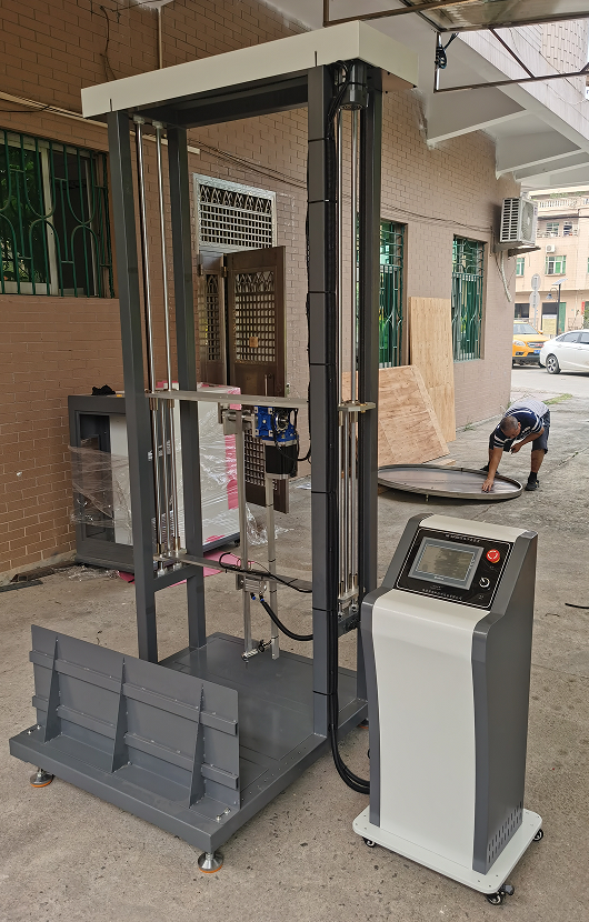 12、試樣安裝:配有滑動(dòng)固定架,大試樣可移除固定架落地直接沖擊,小樣品可以背靠固定架或用束帶固定在支架上;